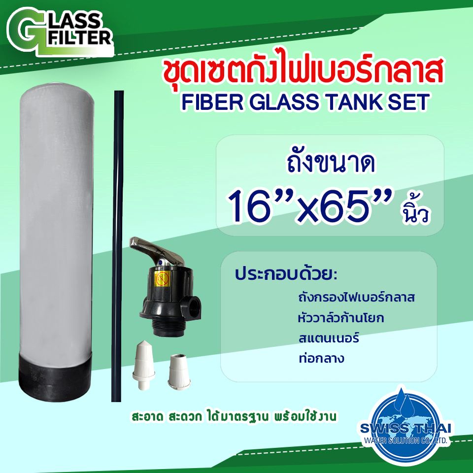 Fiber glass tank 16×65 inch. Manual backwash valve, Strainer, Water pipe