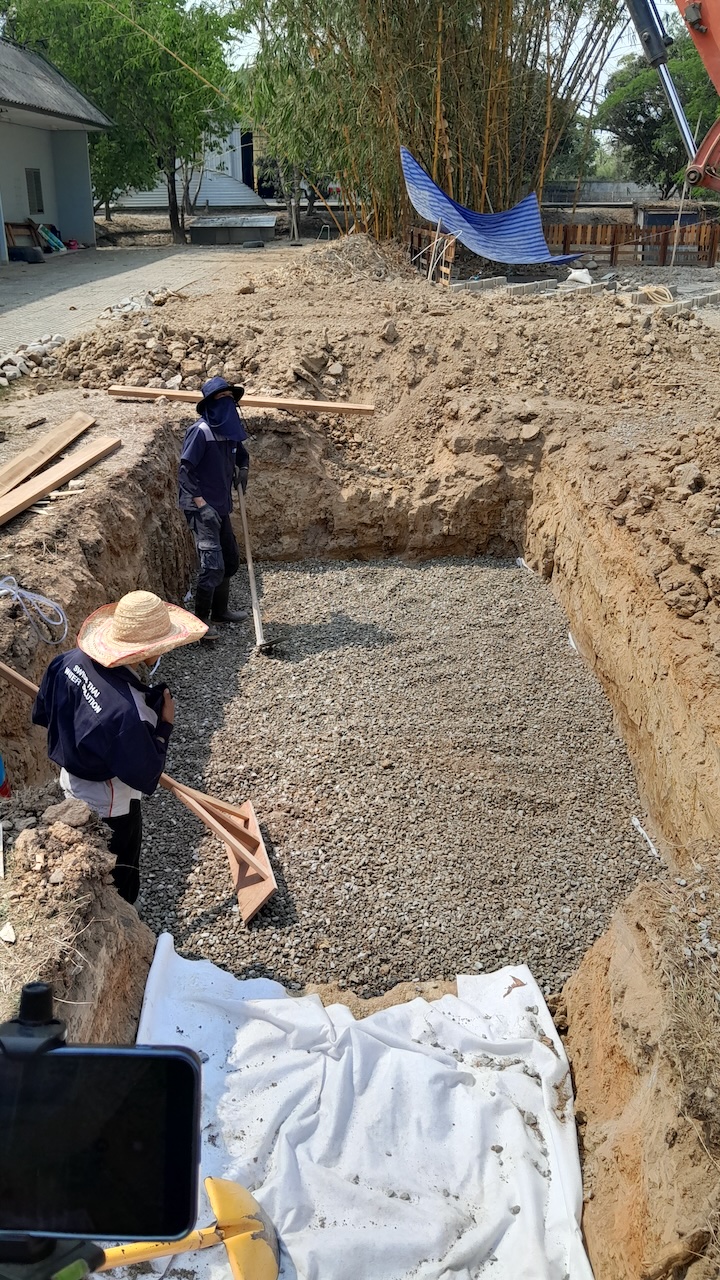 1. ออกแบบผังตามขนาดสระ และขุดดินให้ได้ตามแบบ