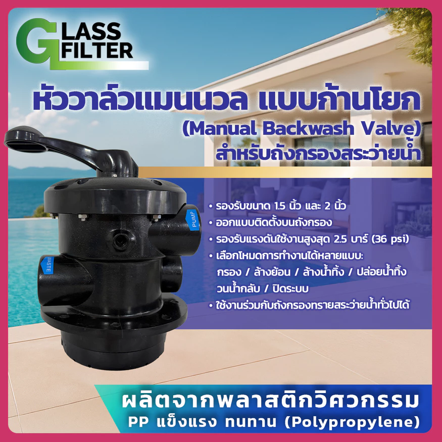 ถังกรองสระว่ายน้ำไฟเบอร์กลาส ขนาด 16 นิ้ว (Ø 450 มม.) Auto valve 1.5 & 2 นิ้ว